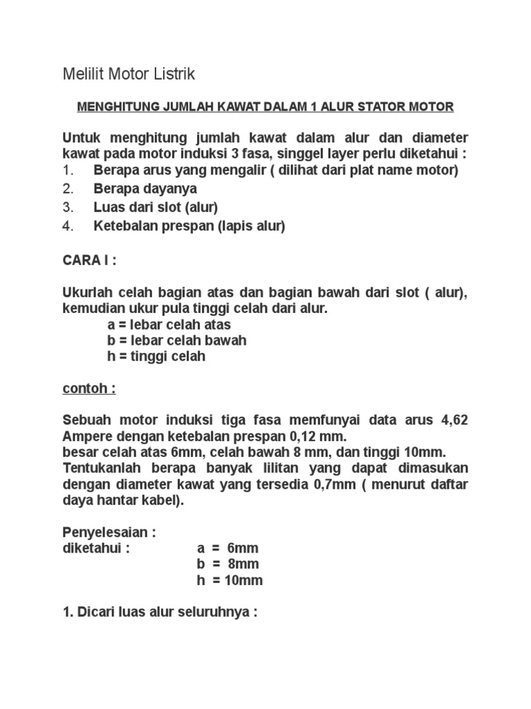 Menghitung Jumlah Kawat Dalam 1 Alur Stator Motor Pdf